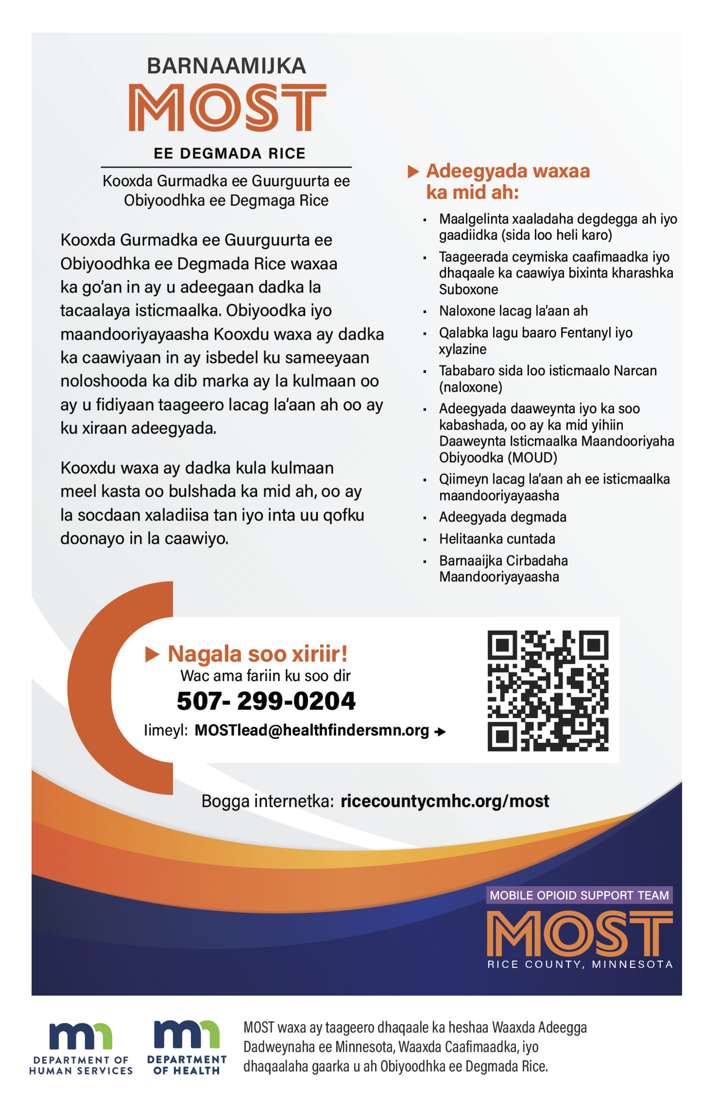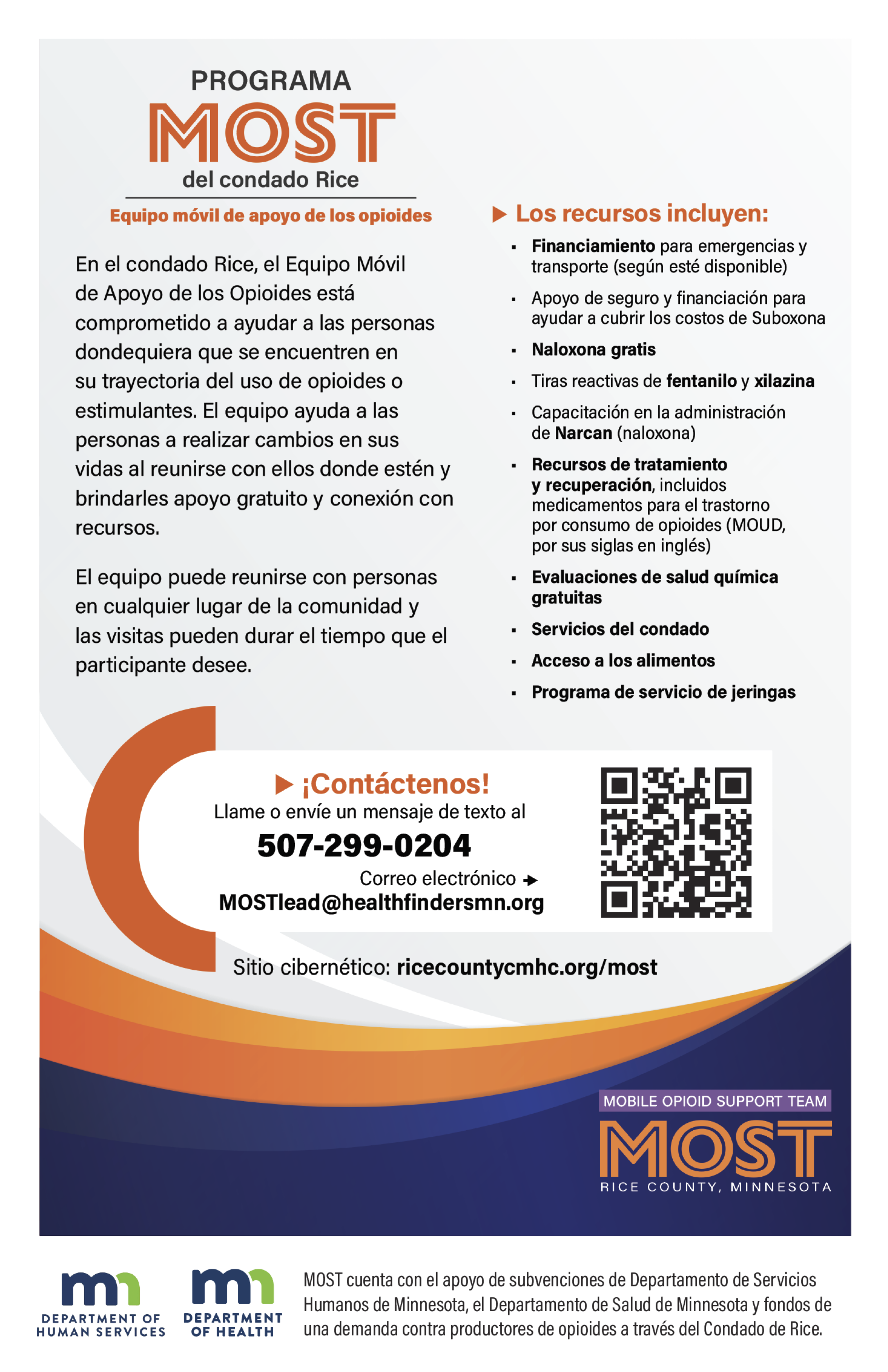 MOST serves residents of Rice County; individuals using or in recovery from opioids or stimulants; and family members of individuals using or in recovery from opioids or stimulants.